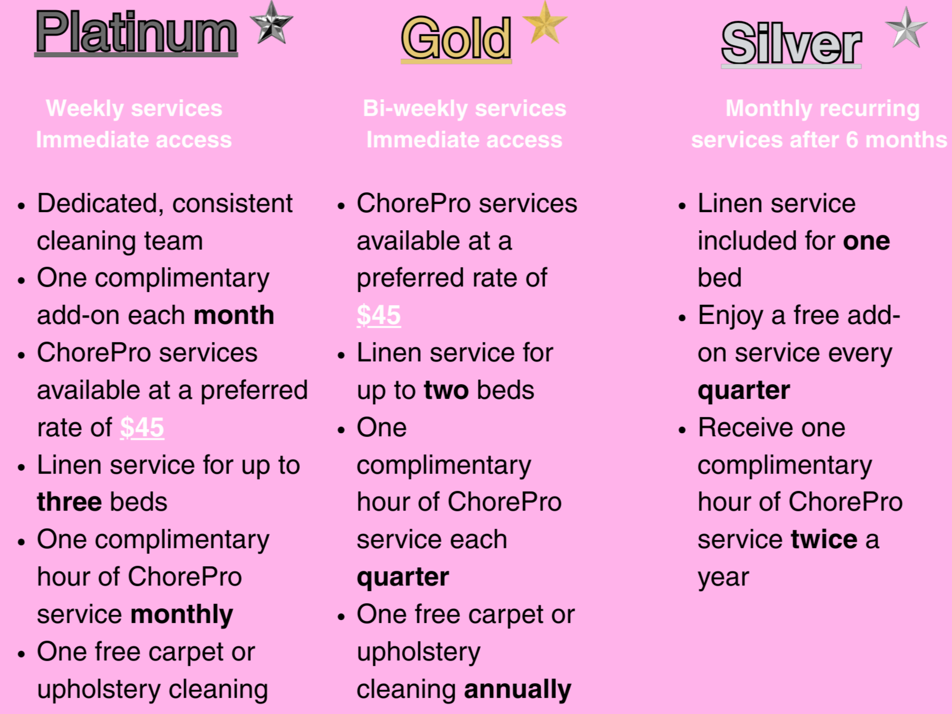 ChorePro & Housekeeping services include: